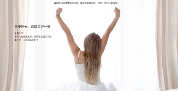 早上起床,背景音乐设成定成闹钟,当悠扬的歌声响起的同时,灯光缓缓亮起,同时电动窗帘也缓缓打开,让你的起床也成为一种享受。