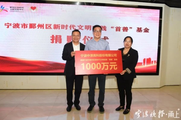 爱心企业捐赠1000万元作为鄞州“首善”基金的启动资金
