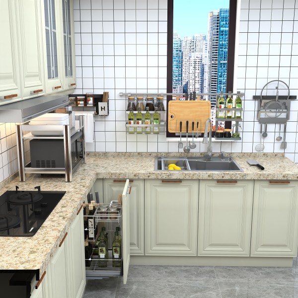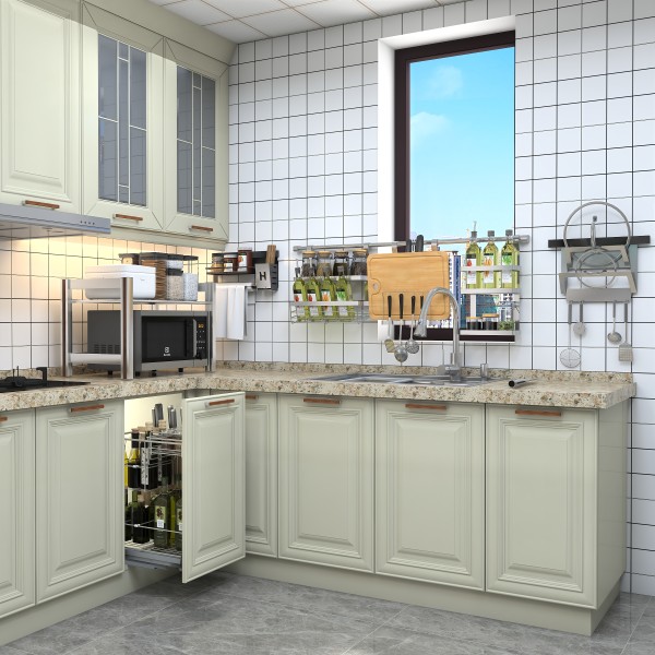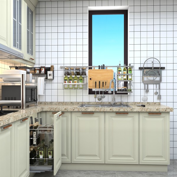 橱柜内部的空间很大,但是由于隔板的不合理设计或者是其他原因,空间总是被浪费。安装一个抽屉式拉篮,可以进行多分隔设计,收纳更多的物品。而且拉出来就是拿取物品,非常方便。
