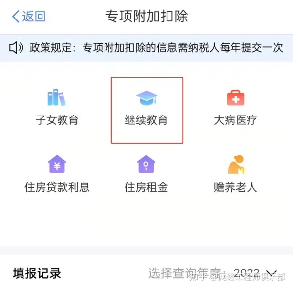 03 点开“专项附加扣除填报”后,点击“继续教育”
