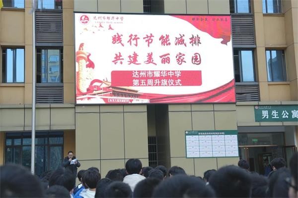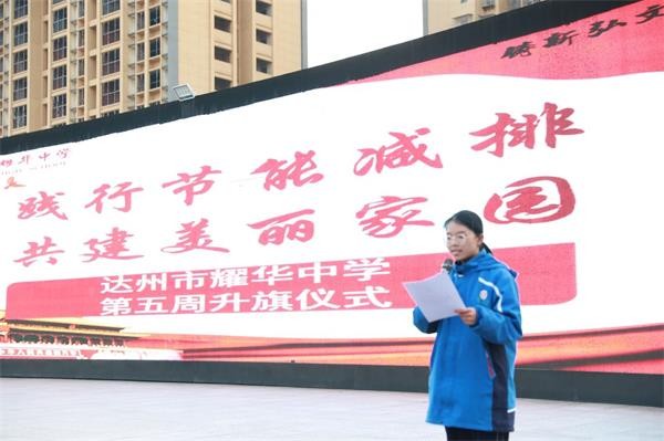 周一清晨,耀华中学全体师生齐聚操场,举行了一场别开生面的升旗仪式。在庄严的国歌声结束后,校团委向全校师生宣读节能减排倡议书。倡议书中,详细阐述了节能减排对于环境保护、资源可持续利用的重要意义,并从日常学习生活出发,向大家发出节约用水、用电,减少纸张浪费,践行绿色出行等具体行动呼吁,字里行间传递着对绿色校园、美好家园的向往,赢得台下师生阵阵掌声。