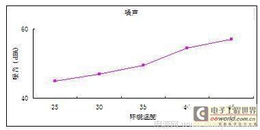 音频噪声污染主要控制方法是选用低噪音换热单元,同时机柜采用消音措施。研究表明,换热单元调速可有效的降低机柜噪音。图5是某型户外产品噪音水平与环境温度关系曲线,从曲线可看出,采用调速后,随着环境温度减小,户外柜噪音明显降低。由于夜晚时环境温度变低,因此采用该项技术的设备晚间有更低的噪音水平,非常符合实际应用环境的需要。