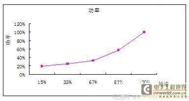 降低换热单元能耗,首先要求机柜的良好密封,良好的机柜密封和隔热性能一方面可以提高设备的防护能力,另外可以提高环境控制单元的效率,从而降低机柜环境控制单元的能耗。对于户外电源来讲,柜内热量的散发主要通过冷热空气之间的热交换将热量带走。换热单元的换热量决定于选择的热交换器及风扇风量。风扇是环境控制单元的主要耗能部件,风扇的风量与能耗有直接的对应关系,如图2所示,风扇通过调速改变风量,风扇转速与耗能呈现二次曲线的特征,在转速低于额定转速的80%条件下,风扇的耗能处在额定能耗的60%以下。因此,风扇在大部分调速区间可以显著降低能耗。