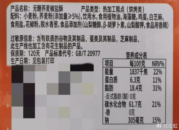 1.如果宣称“无糖”,但营养成分表中“碳水化合物”含量很高,或配料表中含有淀粉糖浆等,需保持怀疑;