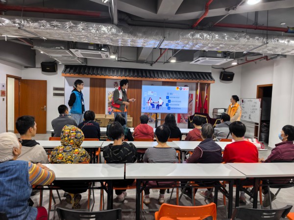 下午 2 时,第二期活动如期开展,聚焦糖尿病预防主题。讲座现场,社工与志愿者结合目标群体的日常饮食和生活特点,围绕饮食控制技巧与血糖监测方法两大核心内容展开科普。志愿者用通俗易懂的语言讲解糖尿病的诱发因素、饮食忌口与合理搭配原则,同时详细示范血糖监测的正确操作步骤,帮助参与者全面了解糖尿病预防要点,切实提升健康防护意识。