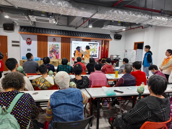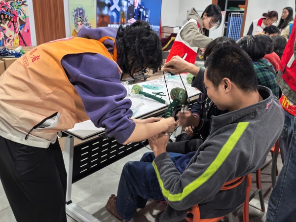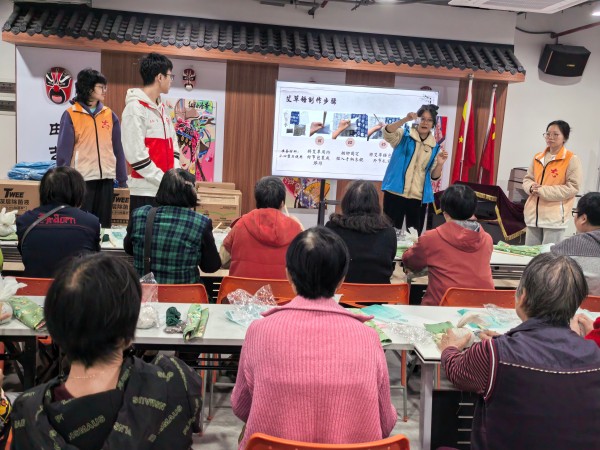 社工与志愿者指导参与者制作中药香囊