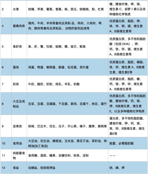 表 2-2 日常食物分类、举例和提供的主要营养素
