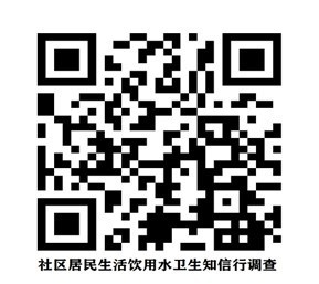 为了解您生活饮用水卫生相关的基本知识、信念和行为,中国疾病预防控制中心发起了社区居民生活饮用水知信行调查,旨在为共建共享安全卫生饮水环境提供科学依据。我们高兴地邀请您参加本次调查,可通过扫描以下二维码填写调查问卷,希望您能在百忙中抽出时间认真填写本调查问卷,对您的付出我们表示衷心地感谢。