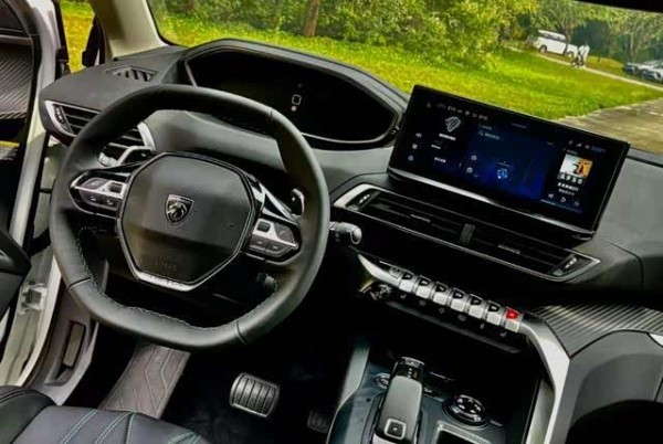 新4008的中控充满战斗气息,相比如今新能源车主推清一色的大屏幕,我更喜欢这套“战斗机座舱”的设计感和仪式感。12.3英寸彩色全液晶仪表盘、10英寸悬浮式触控屏时效果细腻,中控台向主驾驶倾斜,动感的座舱氛围营造得恰到好处。