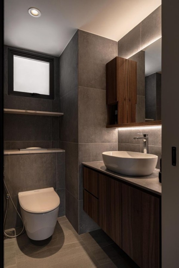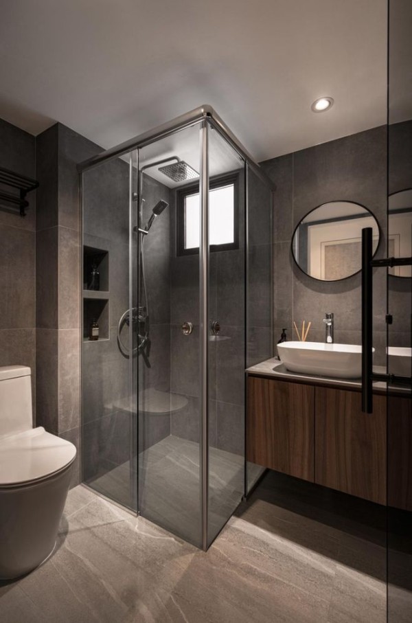 客卫利用墙角一侧的空间,使用玻璃隔断隔出一间独立的淋浴间,保证卫生间内部干湿分离。