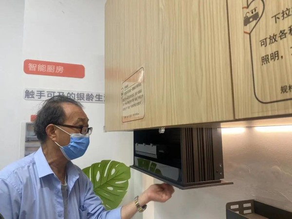小小的橱柜也能如此贴心,老人在试用后说:“家里的橱柜一般都比较高,我们要踮起脚才能够到。这个自动橱柜挺灵敏的,需要的时候让它下降到一定高度,一伸手就能拿到需要的东西。”
