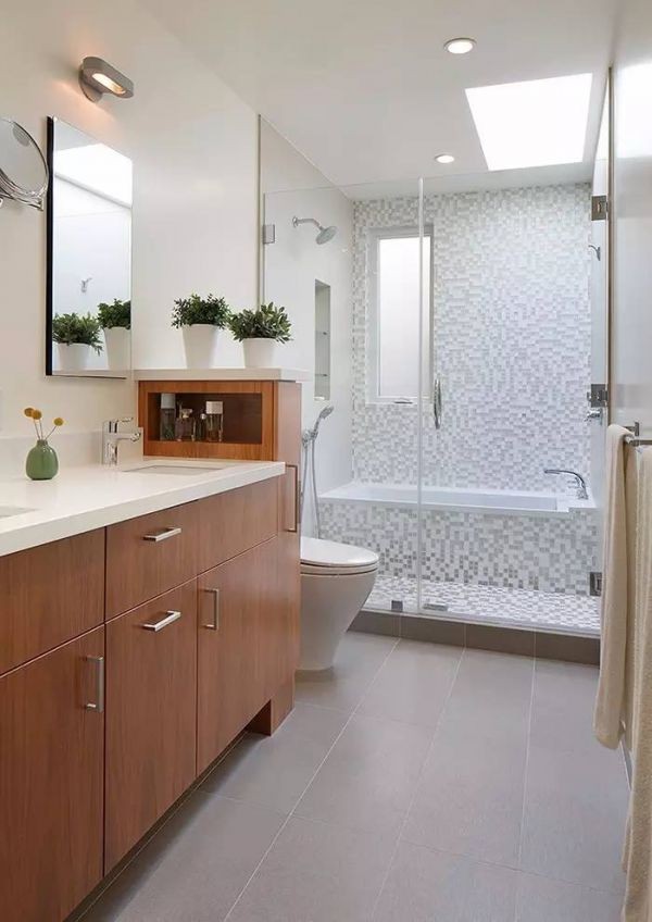 秘籍三:利用好角落,可以使卫生间的空间感增加,看起来更敞亮。这就需要打破寻常的思路,尤其是在面积特别小的卫生间里。比如,可以把通常平列的面盆和坐便器放在卫生间的对角线位置上,中间的空间用来淋浴。这种安排的好处在于,既可以增加视觉的空间感,又增加了淋浴的舒适度。