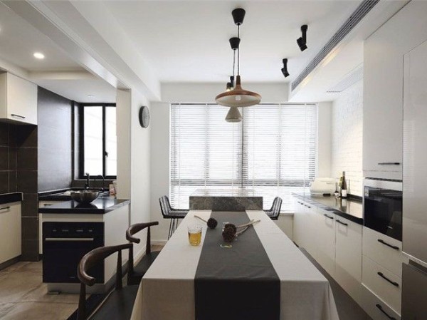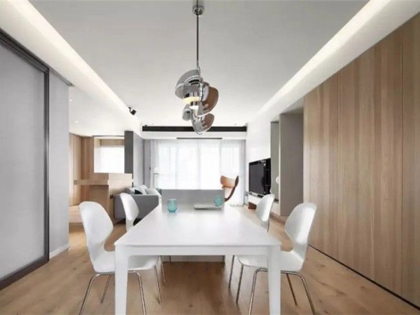 客餐厅一体,是当下主流的设计方式,既能充当家里的接待访客功能,也能满足寒暄后的用餐需求。客餐厅一体的设计,常见于中小户型,尤其是空间狭长的户型。餐厅厨房一体,适合原本没有规划餐厅空间的小户型。餐桌椅放置于厨房的闲置角落,要用时立刻伸展开来。在满足用餐需求的前提下,不影响厨房正常使用。