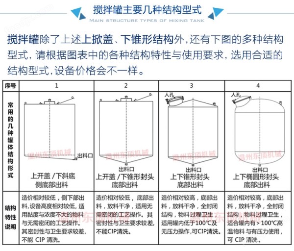 不锈钢搅拌罐主要几种结构形式