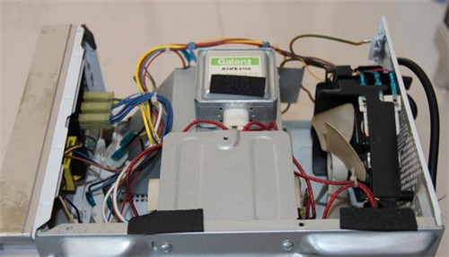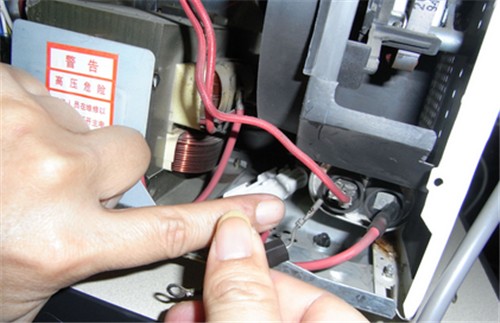 方法二、如果你要检查微波炉的机内电路,但是要将电路切断然后在拆卸微波炉。拆机后,要先使用塑胶绝缘柄改锥将高压电容两端短路放电,避免在微波炉维修时不慎遭受电击。这是因为微波炉断电后,高压电容上仍可能存在较高的电压,尤其是断电不久的炉子更是如此,千万别以为断电后就安全了。
