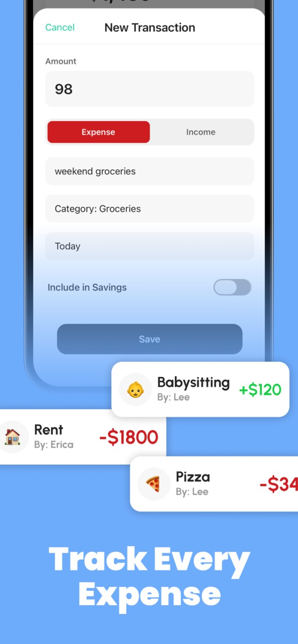 Set shared savings goals and watch progress grow from both partners. Saving feels more motivating and more achievable when done together.