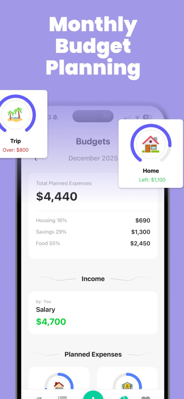 • Monthly budget control
