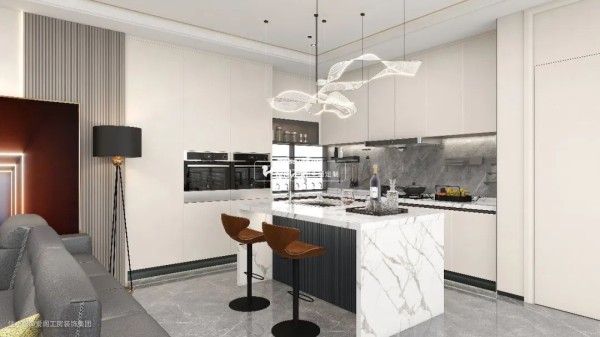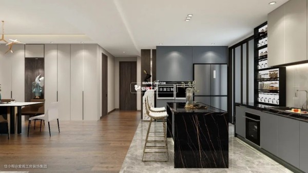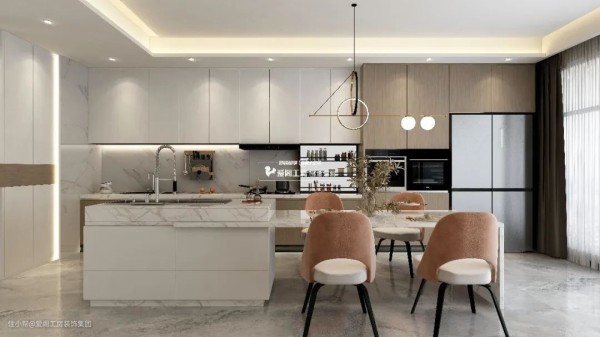 像消毒柜、烤蒸箱、洗碗机、微波炉等厨房电器,这些电器尺寸比较大,摆在台面上的话就会很占空间,现在比较主流的装修方式都是把它们嵌入到柜子里,以保持空间的简洁实用度。