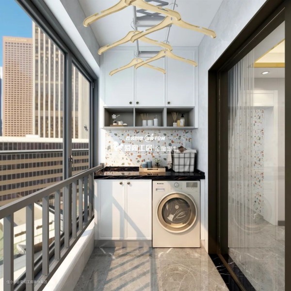洗手盆+洗衣机组合柜的设计,融为一体,实现多样化的功能体验。