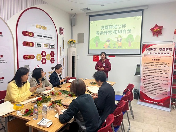 党群活动中心在万柳华联商圈党群服务中心开展了“春染绿意 拓印自然”植树节主题活动,吸引了“两新”组织党员群众、新业态新就业群体以及辖区居民的热情参与。