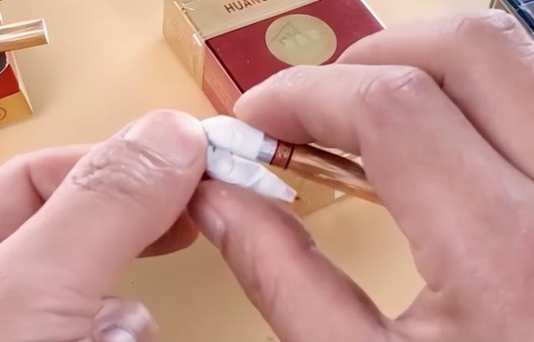 第三,拿出一根烟,用手折一下。真烟不容易折断,真烟有很好的柔韧性,而假烟一折就断,因为做工粗糙,材质比较假。再捏一捏香烟,真烟柔软有弹性,而假烟里面掺有很多的烟梗,捏起来很硬,也没有弹性。