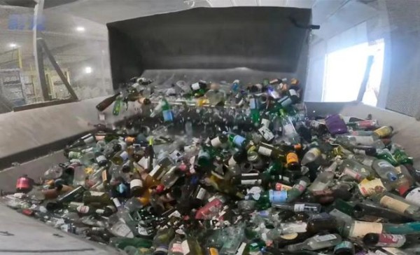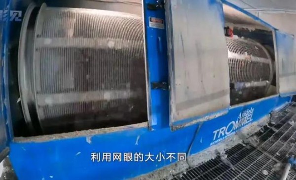 之后会被传送到旋转滚筒利用筛网将不同的材质进行分离,可以把玻璃和其他材料,比如夹杂在其中的塑料等垃圾分离。