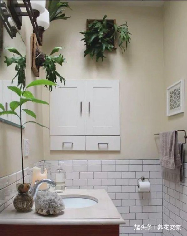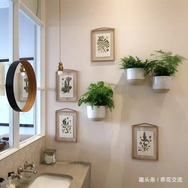 卫生间里面的环境是比较紧凑的,如果摆太多盆栽,就会占据太多的空间,容易影响日常生活,而利用墙壁的垂直空间就是不错的创意。