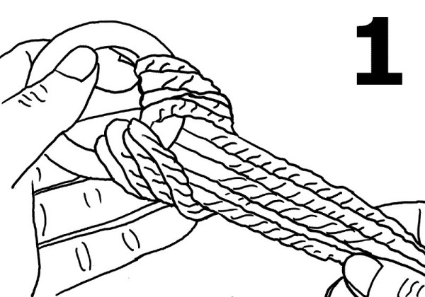 3.在毛线下方10cm处,将一组毛线左边的一股与相邻组毛线右边的一股打结。每一组毛线都重复相同步骤。