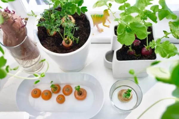 4.从茁壮生长的植物上剪下部分枝丫,直立放到水中,待新的根须长出来以后,你的窗台花园就更加葱郁啦。