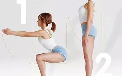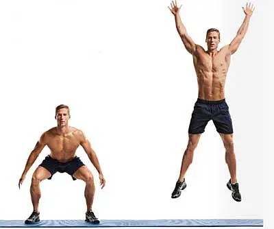 家庭训练动作2:深蹲跳 深蹲的加强版,需要注意:下落时膝盖微弯曲,以减少冲击力