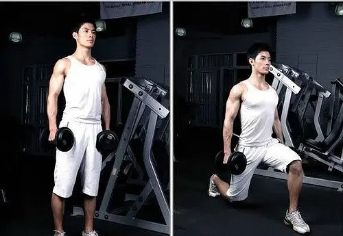 家庭训练动作4:箭步蹲 箭步蹲可以有效刺激臀部肌肉的腿部肌肉。相对于深蹲等动作,箭步蹲更适合膝盖不太好的健身者。 要点:①前脚脚后跟发力;②前脚膝盖不要过脚尖;③有一定训练经验的人,可以在最底端稍微停顿片刻,增强对肌肉的刺激感。