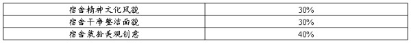 3. 院内评比规则:院内由团委老师及学生会主席评选,以宿舍评比为主,评比规则以下表为主,评选结果前20名晋级参加校赛。