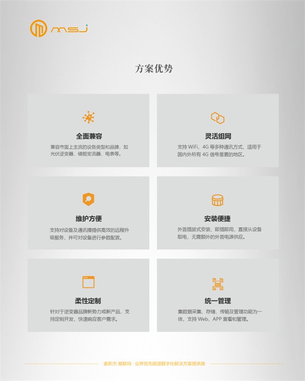 深圳市麦斯杰网络有限公司是以物联网技术为核心的国家级高新技术企业,核心团队具有强大的物联网、5G通信、边缘计算等技术自主知识产权研发能力。麦斯杰打造“2+1”发展战略,聚焦为新能源、通信、基础设施领域行业客户提供数字化智能化的物联网解决方案。在新能源领域提供能联网、虚拟电厂、综合能源管控、分布式光伏智能化运维、工商业储能EMS管理系统等产品及解决方案;在通信领域已成为5G微基站能源管控及基站动环监控的头部供应商;在基础设施领域为碧桂园、融创、保利、佳兆业、华润等知名企业提供数字化基础设施管理系统。