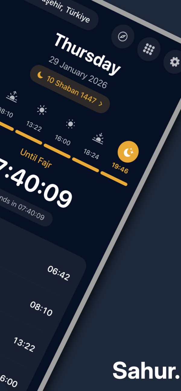 Sahur具备祈祷时间、封斋饭和开斋饭倒计时、古兰经诵读、朝拜方向以及斋月日历等功能,助您与日常的精神修行保持联系。
