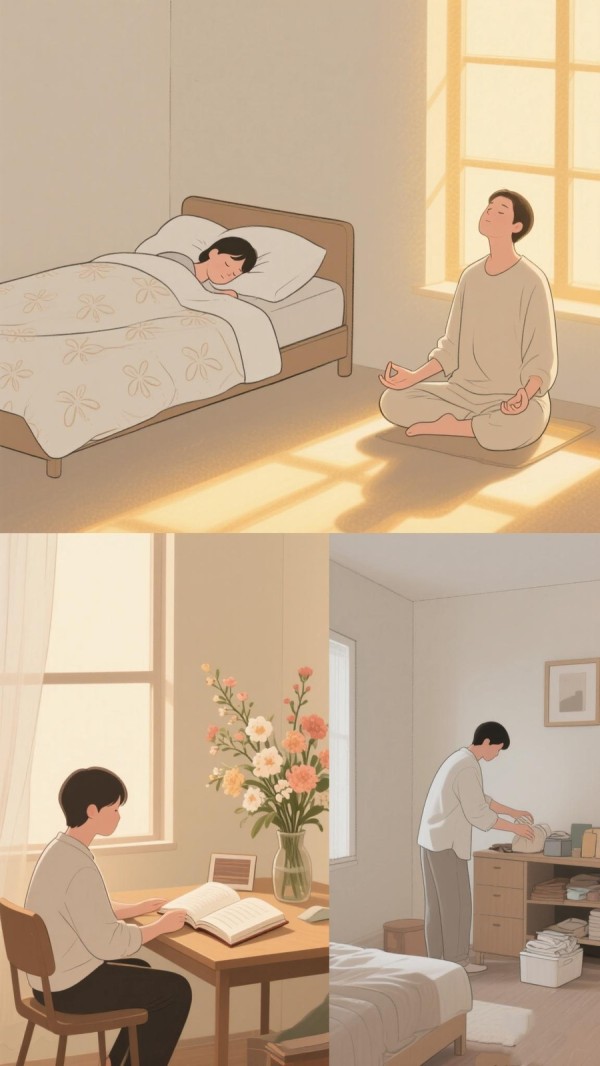 1.强身健体,修炼抗压体质:充足睡眠至关重要,多晒太阳、运动能促进血清素分泌,转化为褪黑素助眠。制定锻炼计划,如游泳、跑步等,增强抗压能力。同时,多喝水,保持规律生活,让身体时刻充满活力。 2.镇静思想,专注当下:冥想是热门的压力管理技巧,能帮我们收敛身心,专注此刻。无论是打坐还是行进冥想,坚持练习,停止自我评判,抵达纯粹之境。 3.丰富精神,滋养心灵:参加读书会、练字等活动,不断学习新知识,丰富精神世界,让内心充实而宁静。 4.简化环境,断舍离:清爽的环境让人身心舒畅,主动改变暴饮暴食等不良习惯,学习停顿、避免诱因,将习惯转化为特长。 其他管理方法 压力管理还有很多的方法:比如调整态度,改掉错误的B,换成正确的B,然后进行自发训练。 比如有人经常对着镜子冲自己笑一下,这就是催眠疗法。再比如创造疗法,让自己去绘画、写作、雕刻,甚至于去做饭。 人们在创作的时候,容易找到自我的成就感,压力就会减小。鲜花疗法,每天几次,取上几滴鲜花的精油滴在自己的舌头下边等等。请求朋友的帮助,叫朋友疗法。还有乐观主义疗法,自我奖励等等,书里都有逐一的介绍。 压力并非源于生活复杂,而是内心纷扰。内心简单,安住当下,才能掌控压力,挣脱抑郁枷锁,拥抱阳光生活。