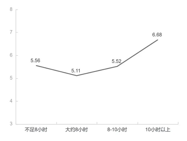 超长(日均超10小时)群体的抑郁水平较其他组别升高23%,印证了“过劳”对心理健康的侵蚀效应。
