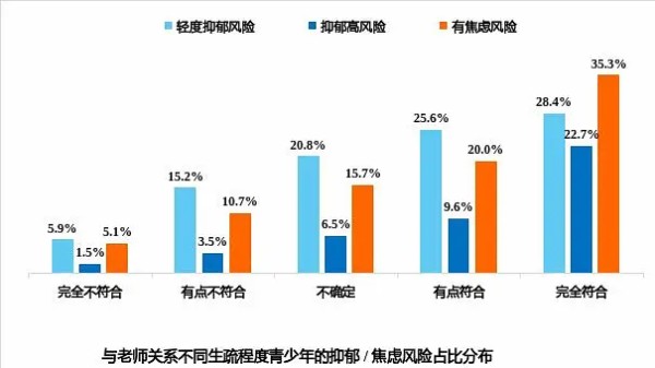 有留守经历、缺乏父母关怀及亲子沟通、师生关系疏远、同学关系不佳的青少年有更高的抑郁、焦虑风险;心理健康状况好的学生在学习上更努力、有更强的内部学习动机;而心理健康风险较高的学生有更高比例不想上学,学业韧性更差,学习效能感更弱。