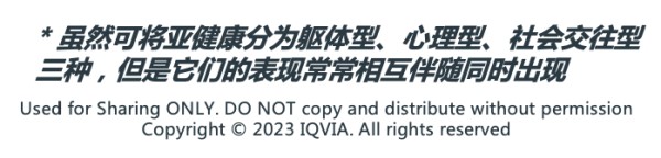 “亚健康”已经是我们耳熟能详的概念,然而由于缺乏科学的引导以及受互联网多种多样信息来源的干扰,消费者的健康焦虑可能不减反增。为此,IQVIA消费者健康团队将在近期首次发布《企业白领健康管理趋势白皮书》,以健康领域的专业洞见,帮助企业白领用更系统的方式了解 “亚健康的概念”、自我评估“是否处于亚健康状态”,并更好地进行健康管理,实现对自我健康管理观念及方式的提升。