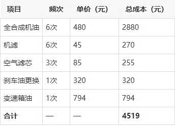 6万公里保养成本明细