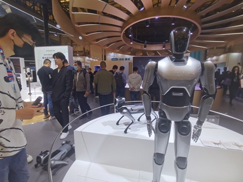 而追觅科技的展台,首次对公众展出追觅通用人形机器人和仿生四足机器狗Eame One二代,为大家展示了其在机器人领域的发展成果,以及对未来生活的美好憧憬。现场工作人员介绍,Eame One二代可完成爬坡、上楼梯、跨越障碍、跳舞等高难度动作,而人形机器人全身拥有44个自由度,单腿还有完整的6自由度,可以完成单腿站立。两款机器人的出现以及相应的展示表演,也引来了现场观众的啧啧称奇。“之前从没有看到过仿真程度和科技含量这么高的机器人,通过它们目前所展现的功能,我觉得未来我们真的有可能实现与机器人共同生活。”一位观众告诉记者。