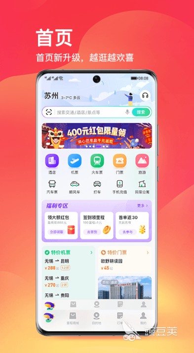 同程旅行是最近迎来更新的一款旅行类型的专业app,主页变得更加简洁,大家使用起来也很方便,对于喜爱旅行的人来说这款APP是非常好的,在这里大家可以看到众多搞活动的商品,比如门票、酒店等等,大家都可以看到众多优惠,大家可以选择合适自己的商品进行购买。