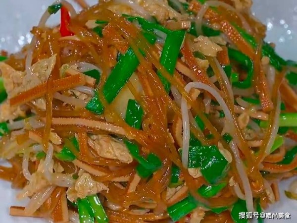 3、另起锅烧油,放入葱花、蒜末、小米辣炒出香味,放入绿豆芽和豆干炒至断生,放入粉条、鸡蛋、韭菜、放盐、鸡精、生抽、蚝油,大火翻炒均匀即可。