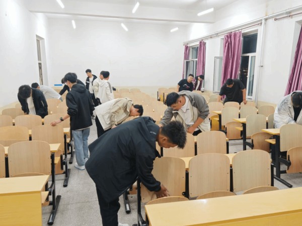 (通讯员 赵航)为营造整洁、舒适的课堂学习氛围,强化学生的劳动意识与集体责任感,智能制造学院辅导员何洪斌组织学生以班级为单位,利用周日晚自习时间,开展了覆盖学院所辖各大教学楼的教室卫生集中清扫活动。此次活动旨在通过学生自主劳动,切实维护校园学习环境,让每一间教室都成为师生安心教学、静心学习的“洁净空间”。