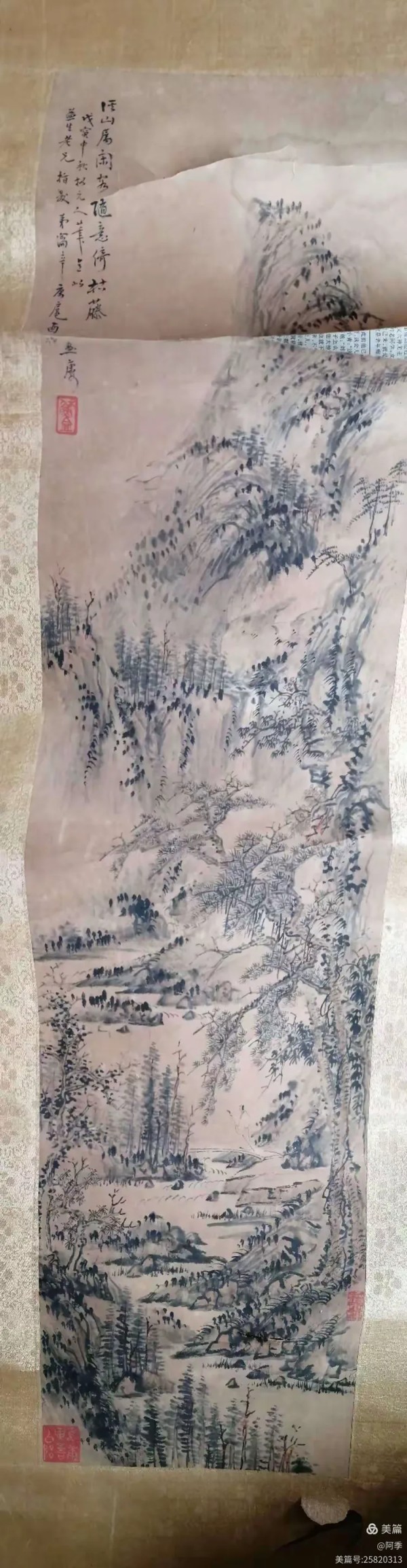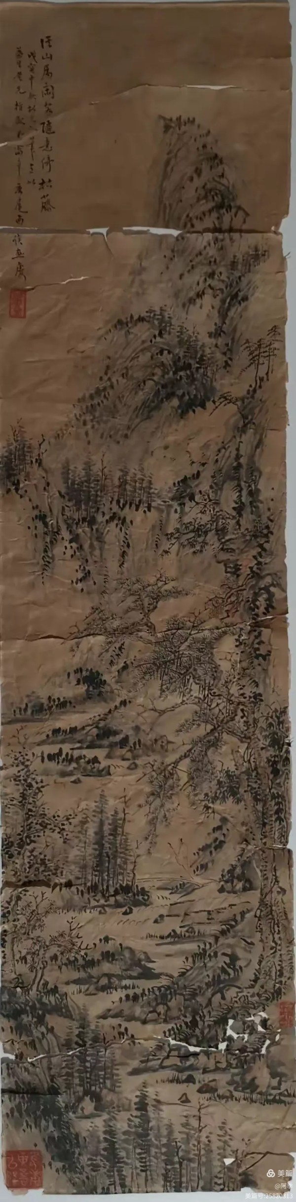此画是1938年的作品,修复此画是我生平第一次尝试,况且旧画的修复我从未进修过,信心满满。