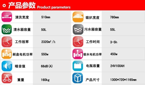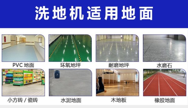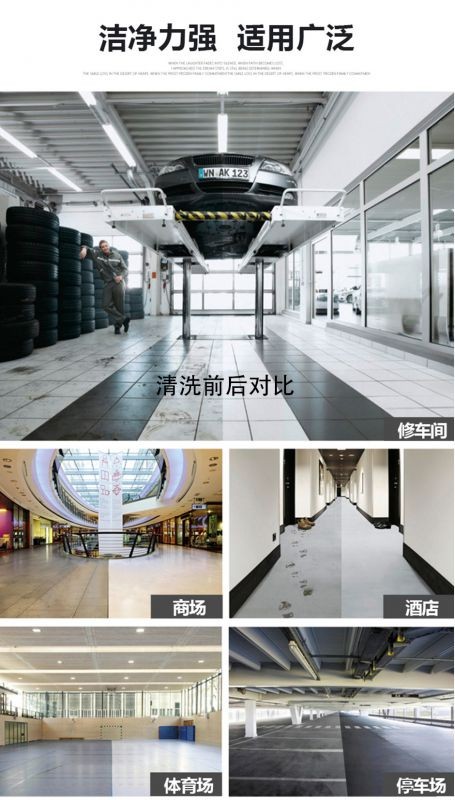 洗擦、吸干一次性完成,洗刷吸干过的地面,洁净如新,脏水、泥土、沙粒、油污统统吸入污水箱;可清洁不同的材质地面,如:环氧树脂地面,油漆地面,混凝土,瓷砖地面等。