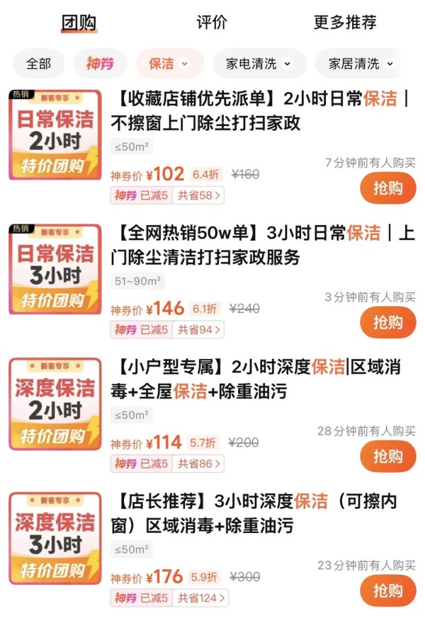 “日常保洁一般是基础清洁,2小时的市场价在120—150元左右,但年底会贵些。”一位客服表示,“深度保洁通常根据面积和时长来计费,比如4小时深度保洁服务适合100㎡左右户型,价格在400—600元,会包含全屋除尘、柜体内部清洁、踢脚线、家电表面等细节的打扫。”