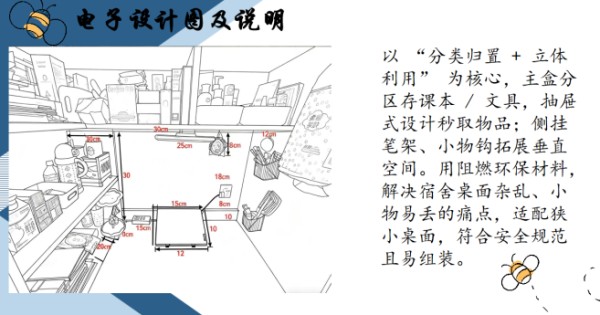 同日举办的宿舍好物设计大赛评审会亮点纷呈。大赛以“创意焕新宿舍・好物点亮生活”为主题,吸引众多学生踊跃参与,参赛作品涵盖收纳类、装饰类,兼具实用性、创新性与个性化色彩。收纳类作品聚焦宿舍空间狭小、物品杂乱等痛点,通过科学设计实现分类归置与立体利用,部分作品还融入环保理念,变废为宝打造实用收纳工具;装饰类作品则尽显学子巧思与生活情怀,将纪念物件、个性装饰与空间布局巧妙结合,营造出治愈温馨、独具风格的宿舍氛围。评审团从实用性、创新性、环保性、美观度等维度综合评定,评选出多项优秀作品。