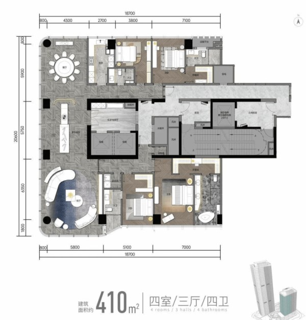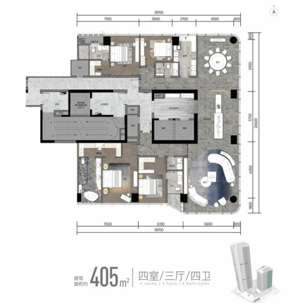 三重入户动线,主人与家政分开全套房设计,全家超尊贵、超私密的生活感受端厅套房,一动一静,兼顾共性与个性生活需求高效地控制短动线内,平衡全家人的生活