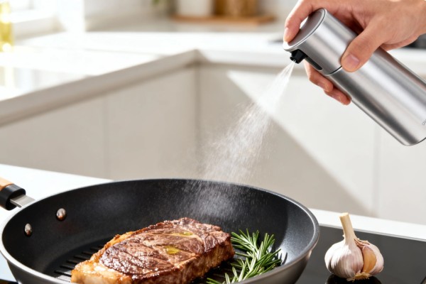 如果觉得用瓷勺或油壶很难控制量,少油烹饪或者凉拌时,也可以选择喷雾式油壶,定量精准,按压一次大约是2~3毫升,不容易过量。