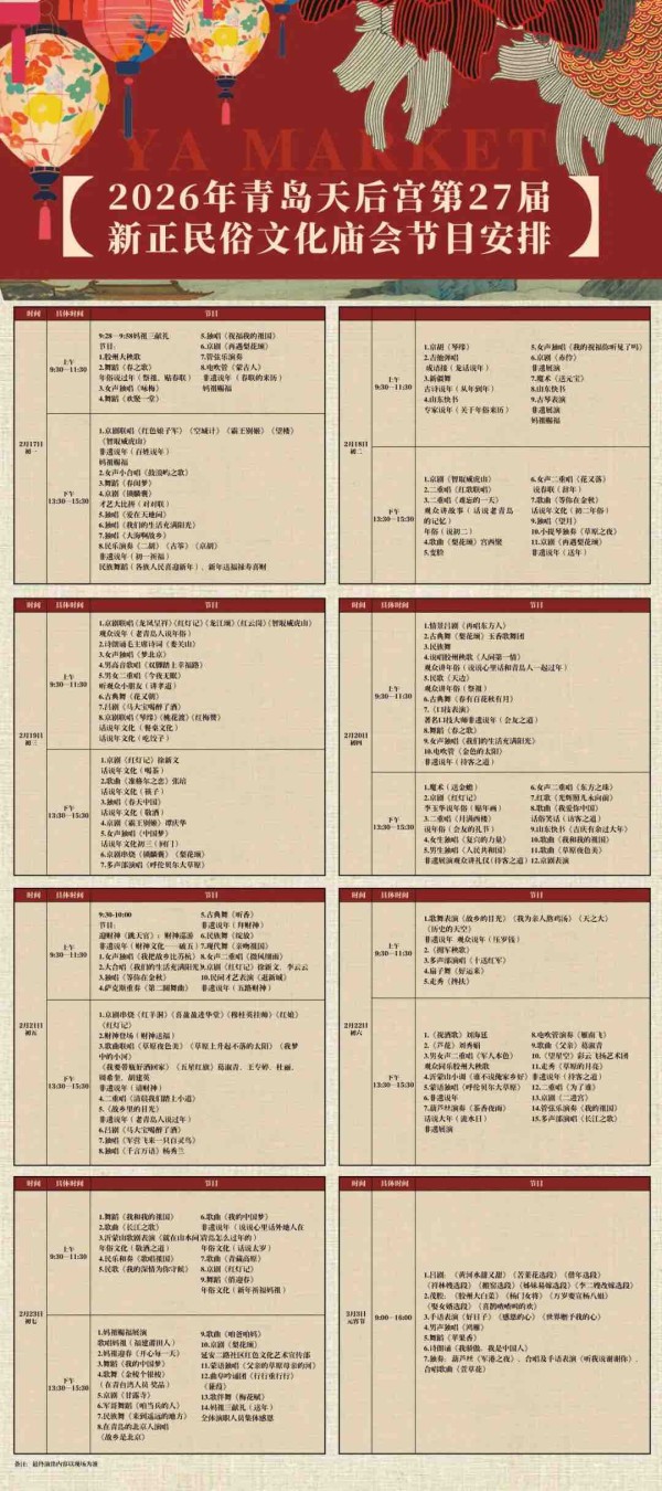 青岛天后宫新正民俗文化庙会,是山东省非物质文化遗产保护项目,庙会融合了民间信仰、文化活动、商业交流等多种功能,是青岛地区最具代表性的传统民间活动之一。